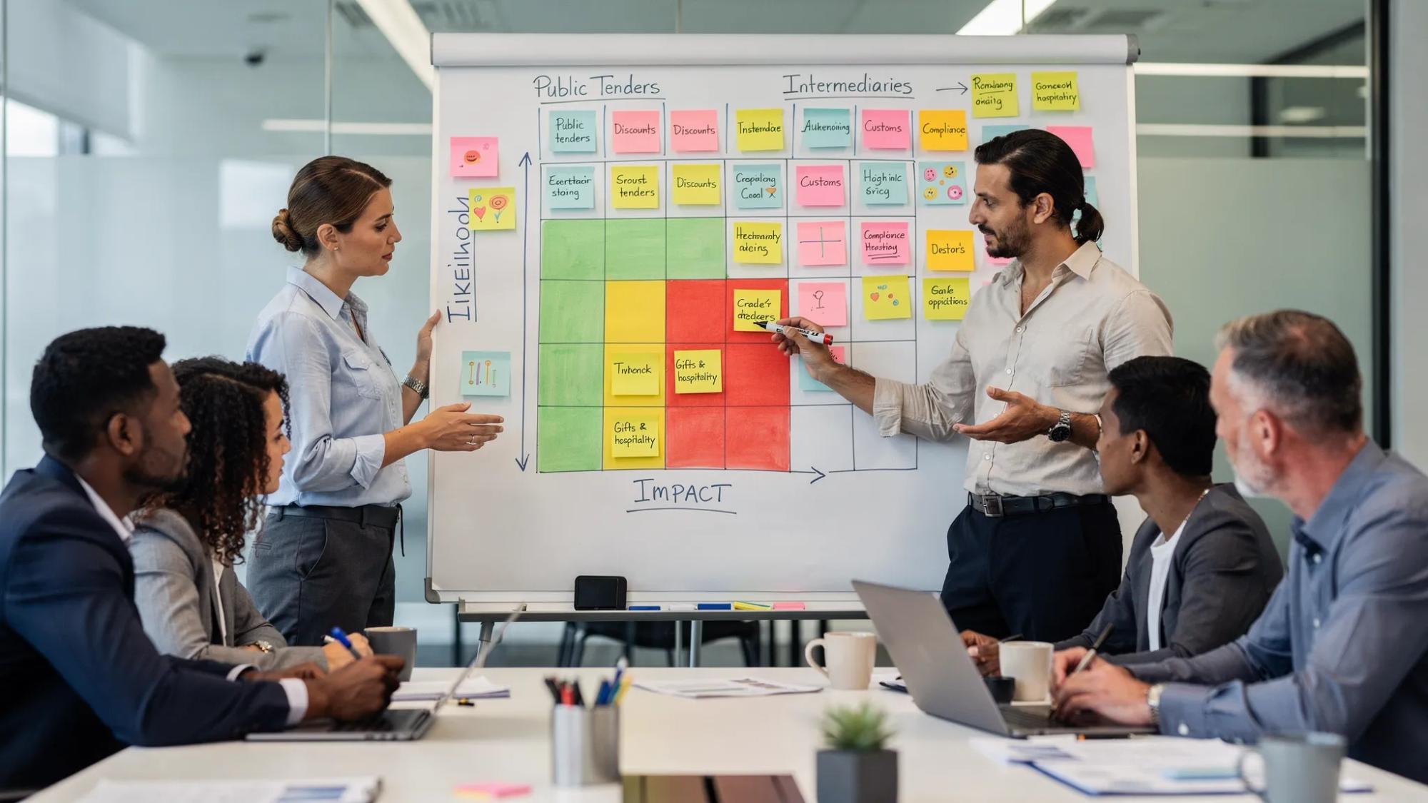 On the standards side, ISO 37001 requires organizations to determine and assess bribery risks and maintain an anti-bribery management system that is risk-based. See the standard overview at ISO 37001. (ISO 37301 is a broader compliance management system, useful as a supporting structure.)