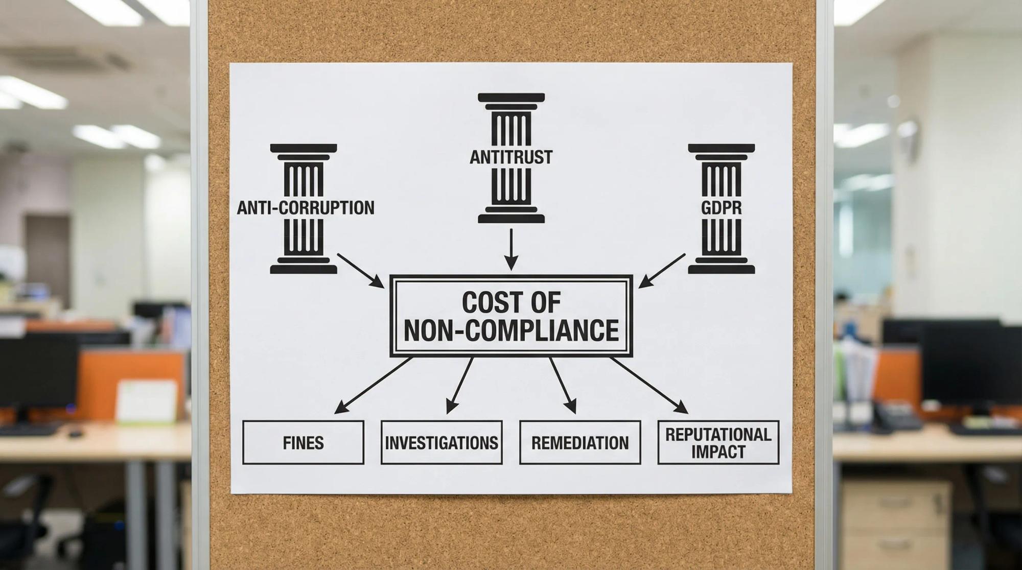 This article looks at what that chain reaction actually looks like — across anti-corruption, antitrust, and data protection — and at how a well-run compliance program either prevents it from starting, or limits the damage when it does.