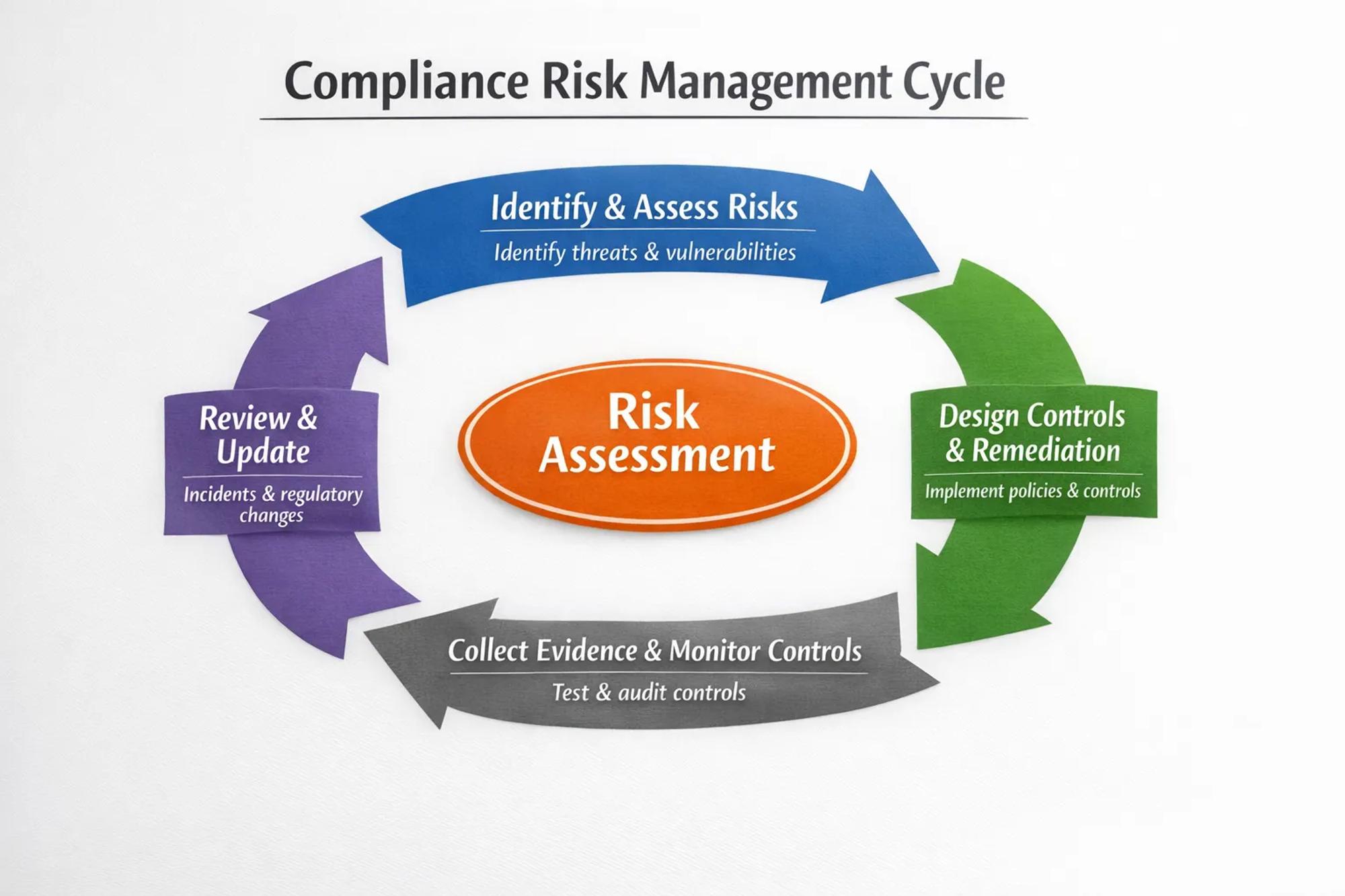 A risk assessment is the structured process of identifying compliance risks, analyzing how they could occur, and evaluating their significance. In practice, it answers: